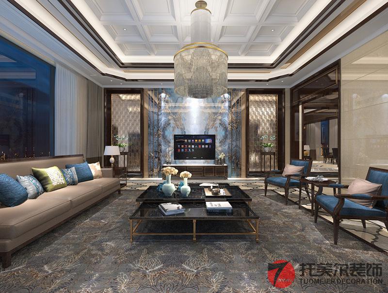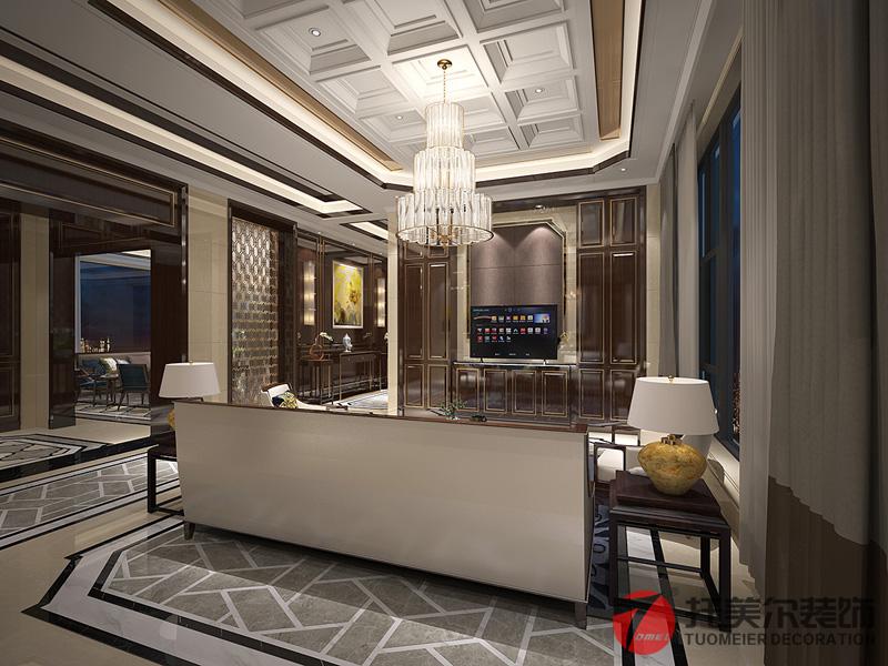 領秀濱江頂樓復式新中式效果裝修設計效果圖